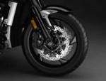 フロントブレーキは、外径320mm/厚さ5.5mmのウェーブ形状大径デュアルフローティングディスクを装着、これに住友製対向6ピストンモノブロックキャリパーをラジアルマウント方式にて装着。ブレンボ製マスターシリンダーもラジアルポンプ型を採用して入力に応じた強力な制動力を発揮する。ブレーキレバーはアルミ製軽量タイプで手の大きさなどに応じて調整可能。リアにも外径298mm/厚さ6mmのウェーブディスクを採用した。アケボノ製シングルキャリパーはスイングアーム下側に設置され、低重心化に貢献する。リヤのマスターシリンダーはブレンボ製。