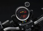 ハンドルバーにマウントされたマルチファンクションメーターには、大型のアナログ式タコメーターとデジタルスピードメーターに加え、ケース右上にはシフトライトも備えている。シフトライトはレブリミットやYCC-Iの作動ポイントなど好みに応じて任意に設定可能で、設定回転数に達すると青白く点灯する。